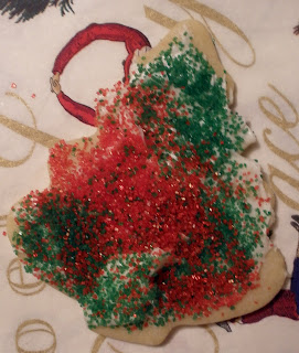 The unusual shade of gray is the result of mixing the red and green sugars into the vanilla frosting. Doesn't look very appetizing to me, but, according to the kids, they tasted good.